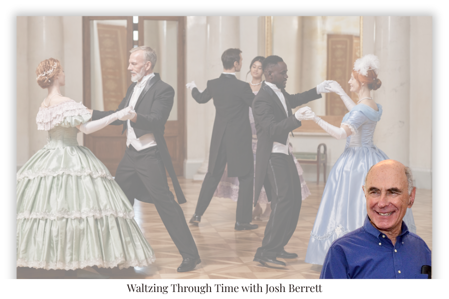 I’d like to tell you more about the 8-week course I’ll be offering on Zoom, entitled Waltzing Through Time. Starting on Wednesday, September 17th., it will run for 8 weeks from 10:30 am to noon (EST). The course is being offered through the Lifetime Learners Institute. Lifetime Learners is a nonprofit in southern Connecticut that provides lifelong learning through Norwalk Community College. I’ve been creating courses for them since 2012 after I retired from teaching. To see a breakdown of the eight weeks see the schedule at the bottom of this post.